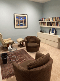 Contains leather analytic couch, stressless chair, 2 large leather chairs, rugs and paintings. Wifi, utilities, supplies and cleaning included. Large in-office closet. Shared bathroom in hallway between 2 offices. Small shared, pleasant, decorated waiting room. Frig and microwave in hallway closet. $1200/ month. Contact: 650docs@gmail.com